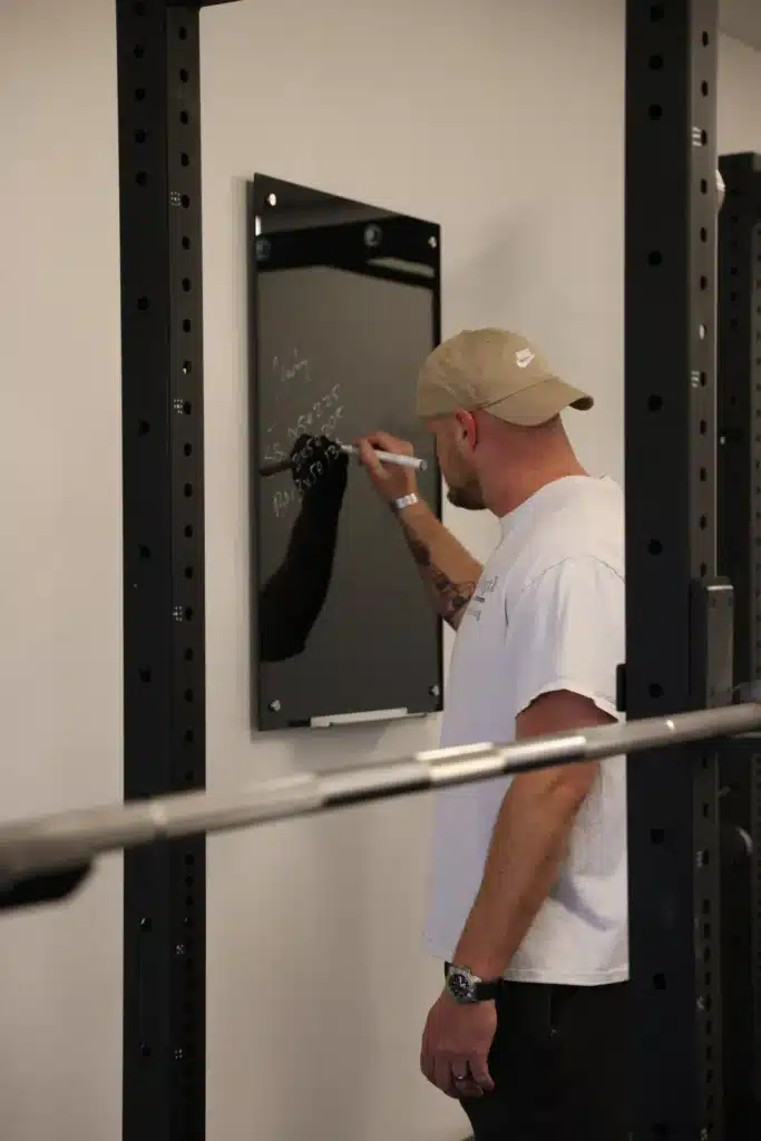 Coach Greg writes out a member’s program for the day